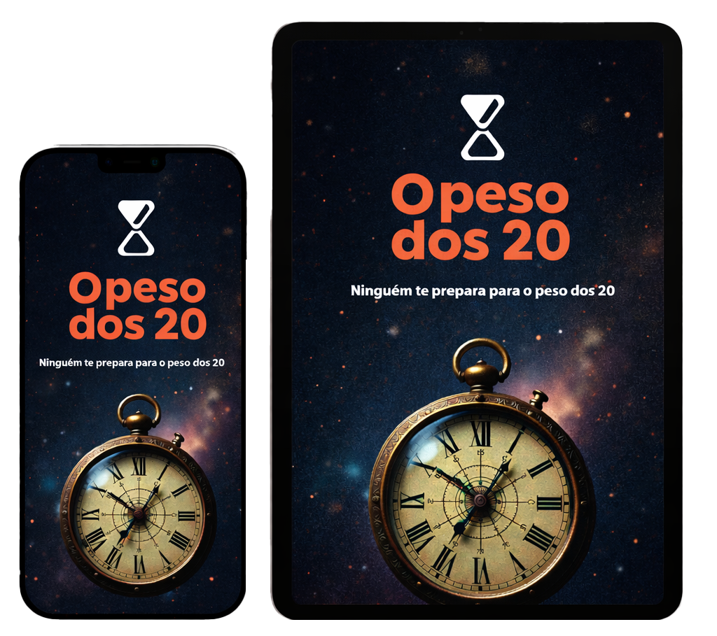 O Peso dos 20 é um e-book direto e honesto sobre a fase mais confusa da vida adulta. Ele não promete atalhos, dinheiro fácil ou respostas prontas. É um conteúdo pensado para quem está nos 20 e poucos anos e se sente pressionado por escolhas, comparação constante e pela sensação de estar ficando para trás, sem saber exatamente por onde começar a organizar a própria vida.